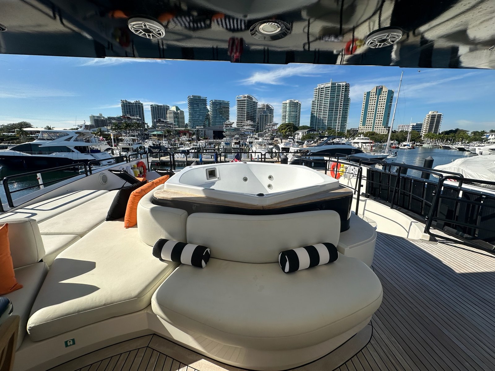 Our all-inclusive packages cover fuel, taxes, captain & crew service, ice, bottled water, safety gear, and basic amenities (Bluetooth sound system, spacious decks). Add-ons like custom catering, gourmet meals, jet skis, paddleboards, or DJ are optional. No hidden fees – we focus on hassle-free luxury yacht charters.
