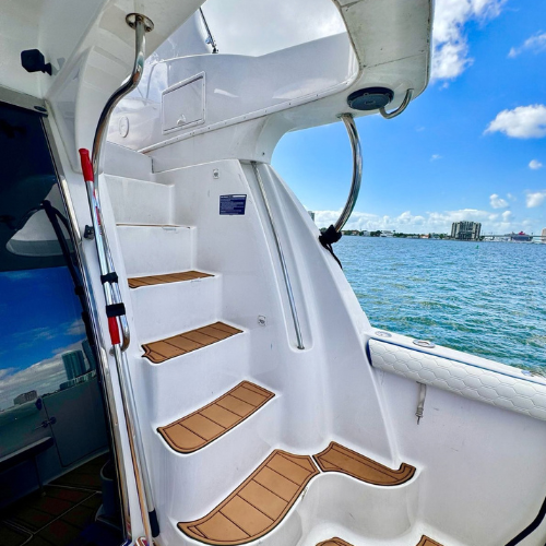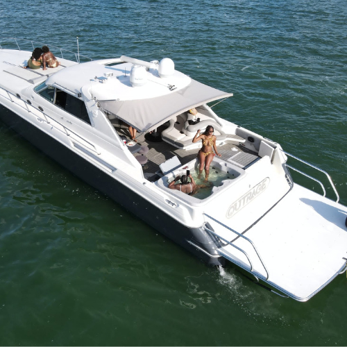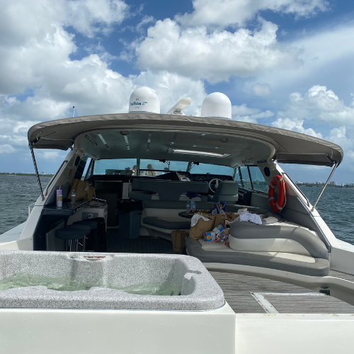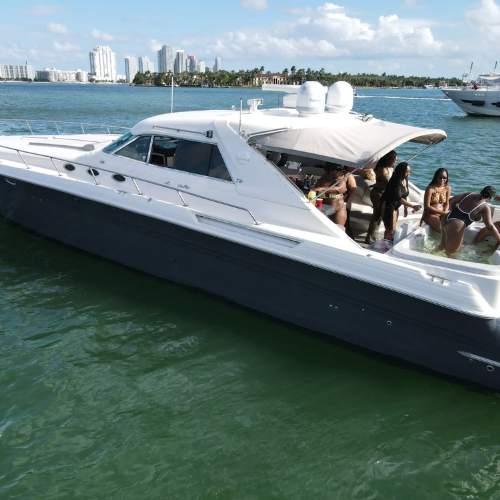 Combining luxury and accessibility, this flagship Sea Ray yacht is engineered to explore every corner of the Bay thanks to its impressively manageable draft. With a spacious deck and a premium on-board hot tub, it stands out as Miami’s premier choice for elite sandbar parties and coastal cruising. It is the ultimate vessel for those who refuse to compromise between high-end comfort and total geographical freedom.