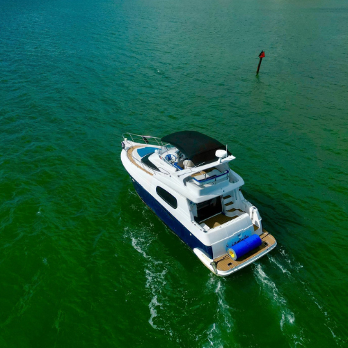 A: While large superyachts like our Redemption 100’ offer ultimate luxury, their deep draft makes it difficult to anchor directly on shallow sandbars. For "Sandbar Parties," we recommend our Shallow-Draft Certified fleet, such as the Lumar 75’, which provides luxury while being technically suited for the Bay’s unique depth.