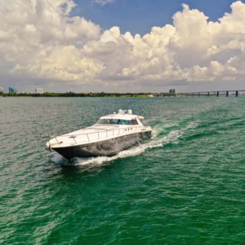 A: For the best experience in Biscayne Bay, shallow-draft yachts between 40ft and 75ft (like our Isabella 48’ or Outrage 70’) are ideal. Because the Bay has many shallow areas and sandbars, these vessels can navigate closer to the shore and anchor at popular spots like Nixon Sandbar where larger superyachts cannot reach.